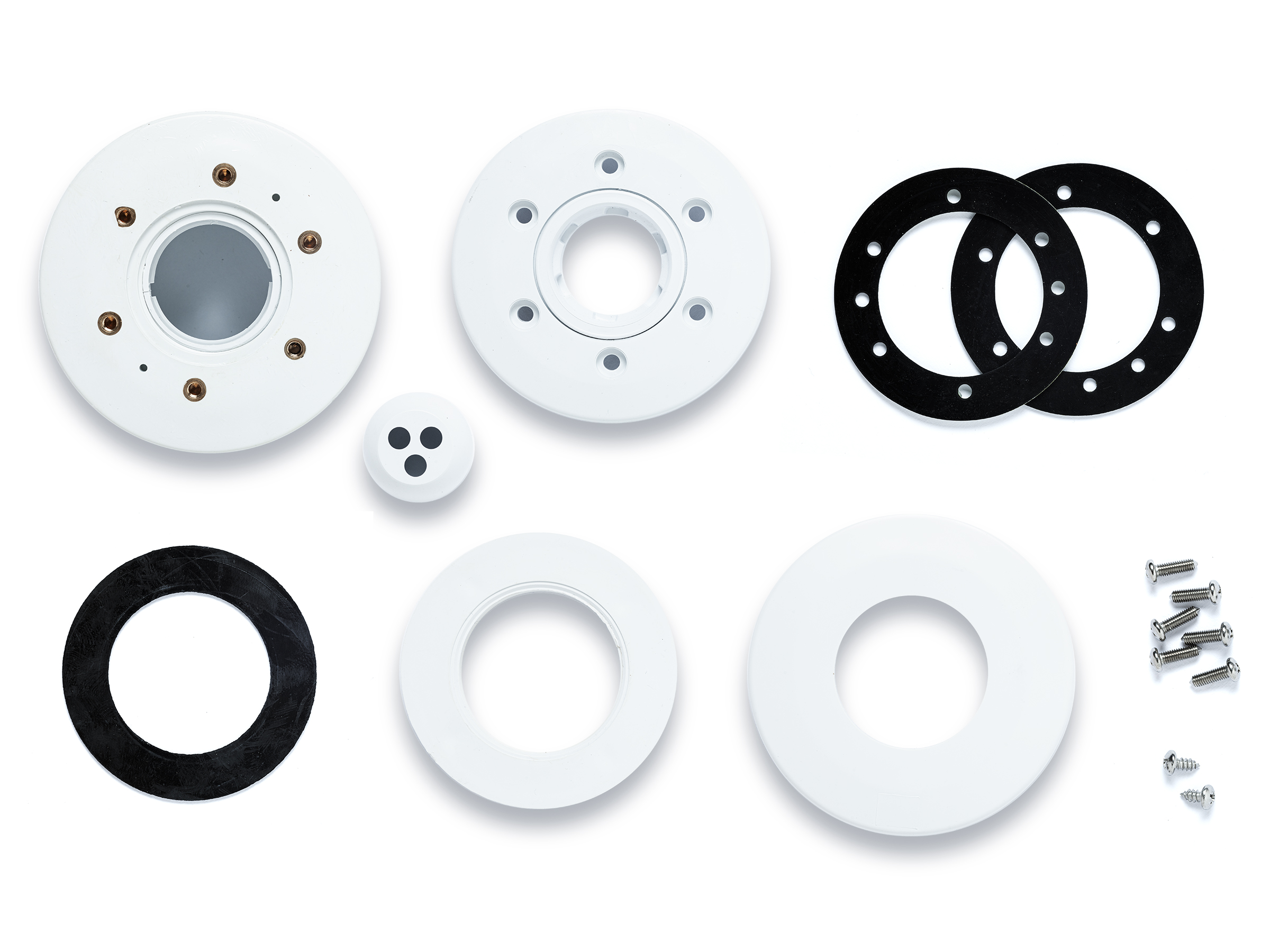 Die Einlaufdüse Galaxy besteht aus robustem ABS Kunststoff und besitzt 3 Einströmlöcher. Zur Befestigung der Schrauben des Flanschsets befinden sich im Einlaufdüsenkörper integrierte Gewindebuchsen.