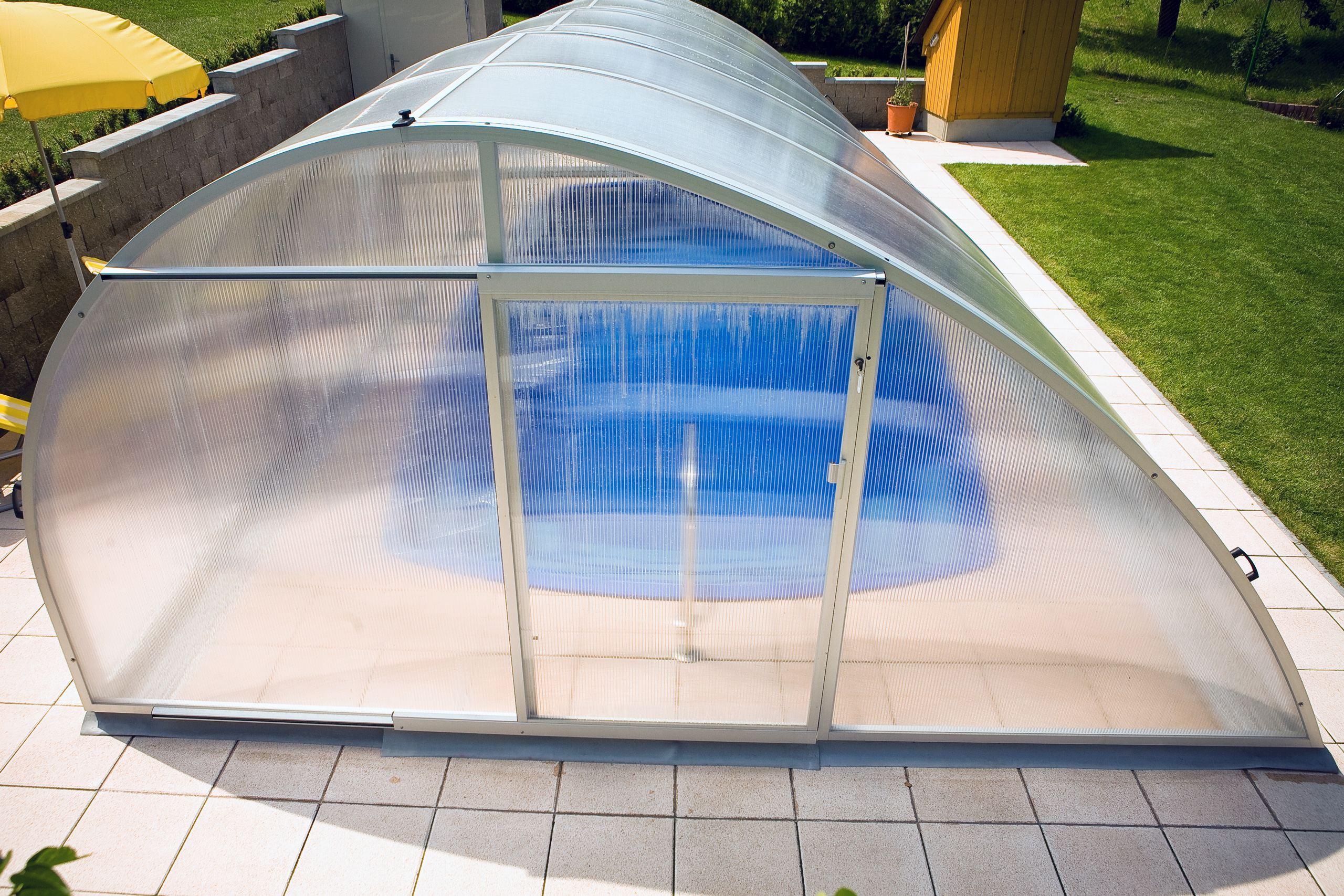 Die mobile Schwimmbad-Überdachung ist heutzutage ein untrennbarer Bestandteil des Schwimmbades. Dank den Eigenschaften der neu eingesetzten Technologien ermöglicht sie auf ideale Weise, die Sonnenenergie zu nutzen und so die Badesaison zu verlängern und die Betriebskosten zu reduzieren. Ein revolutionäres System der Swimmingpool-Überdachung in höchster Qualität.