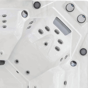 Die Größe jedes Sitzes wurde nach europäischen Normen gründlich studiert. Für jeden Sitz des Whirlpools wurde der Bereich so definiert, um die Konturen Ihres Körpers bestens zu kopieren, und damit das Sitzen sowie die Massage komfortabel sind.