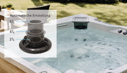 • Jede Pumpe startet bei einer bestimmten Düsenauswahl. Die Intensität der Massage bleibt daher gleich, egal ob Sie alleine im Whirlpool oder mit mehreren Personen sind.